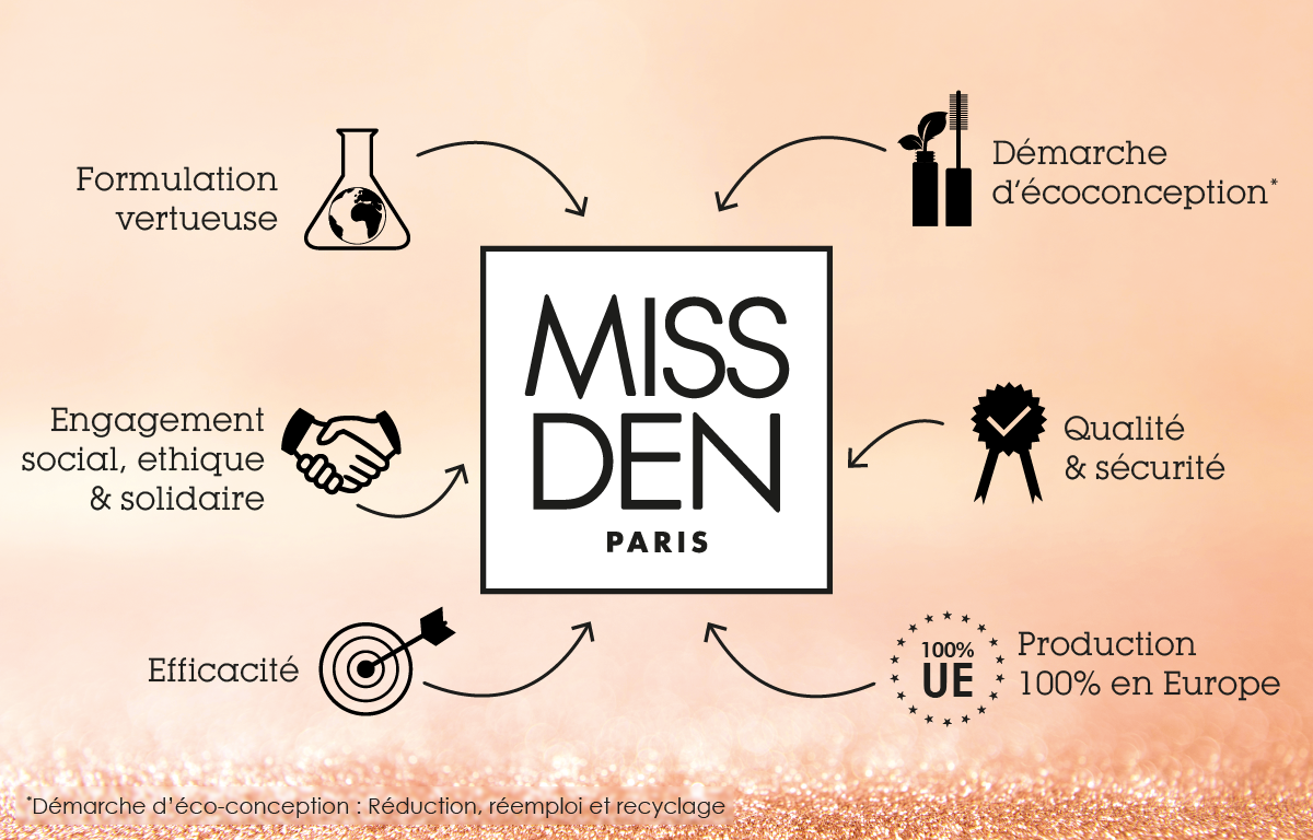 Miss Den sélectionne avec soin des ingrédients de haute qualité et efficaces qui permettent d’offrir un résultat maquillage visiblement performant. Nos produits vous font vivre une véritable expérience sensorielle pendant votre rituel de beauté quotidien.
